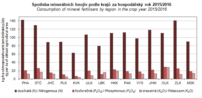 Graph 27. Consumption of mineral fertilisers by region in the crop year 2015/2016