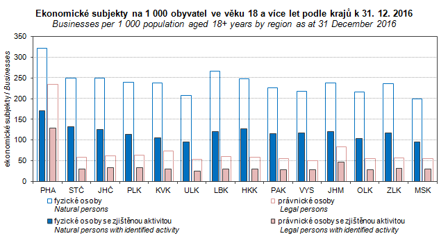 Graph 22. Businesses per 1 000 population aged 18+ years by region as at 31 December 2016