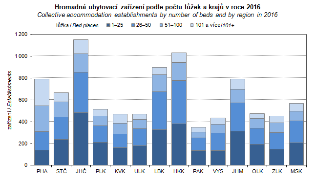 Graph 34. Collective accommodation establishments by number of beds and by region in 2016
