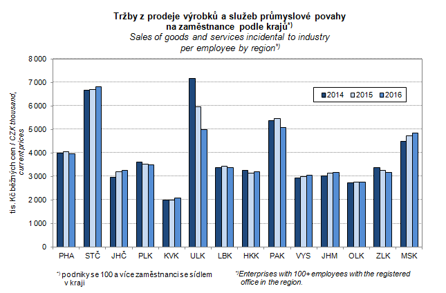 Graph 29. Sales of goods and services incidental to industry per employee by region