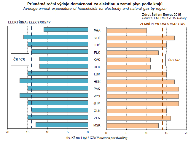 Graph 31. Average annual expenditure of households for electricity and natural gas by region