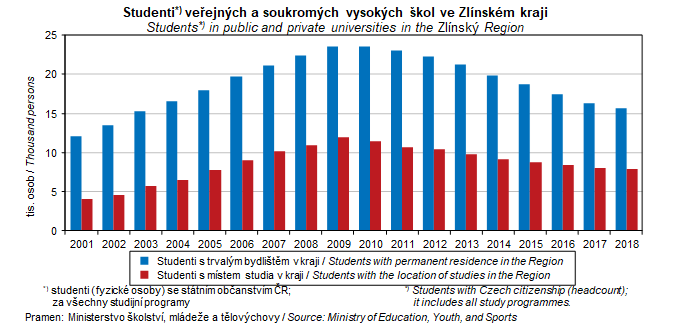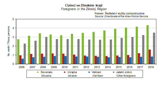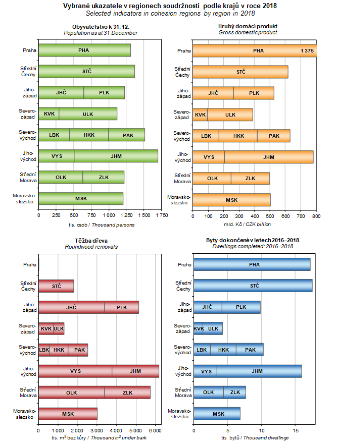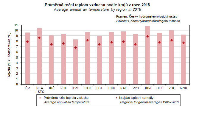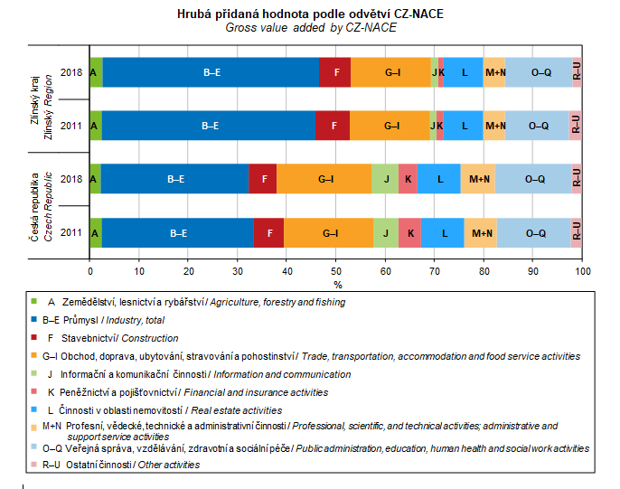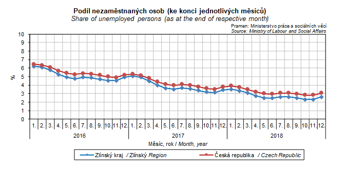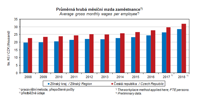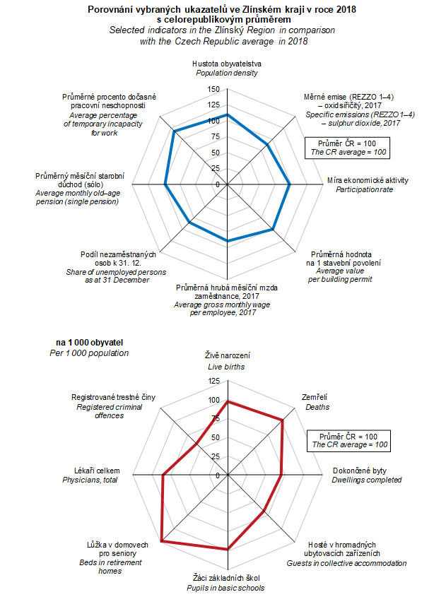 Graph 1. Selected indicators in the Zlínský Region in comparison with the Czech Republic average in 2018