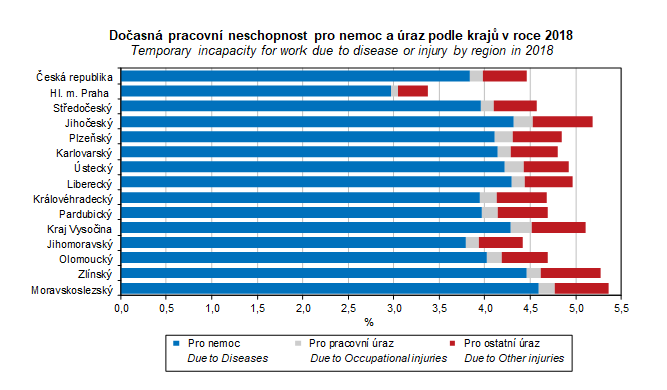 Graph 41. Temporary incapacity for work due to disease or injury by region in 2018