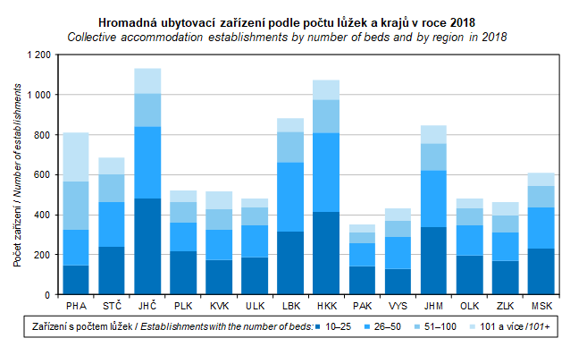 Graph 36. Collective accommodation establishments by number of beds and by region in 2018