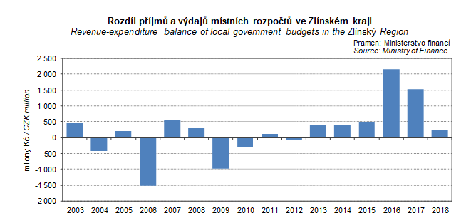 Graph 16. Revenue-expenditure balance of local government budgets in the Zlínský Region