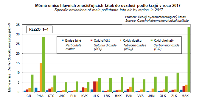 Graph 5. Specific emissions of main pollutants into air by region in 2017