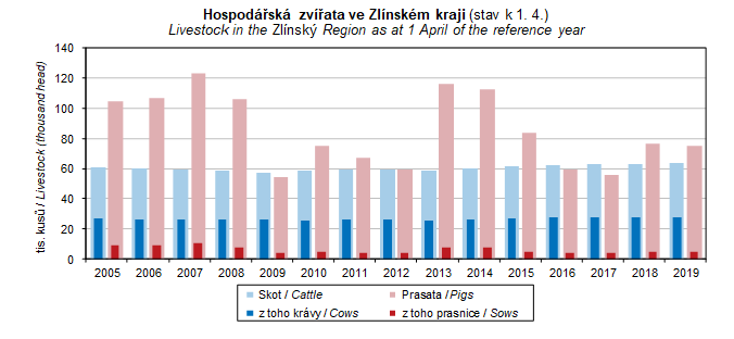 Graph 25. Livestock in the Zlínský Region as at 1 April of the reference year