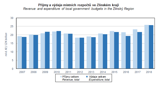 Graph 14. Revenue and expenditure of local government budgets in the Zlínský Region