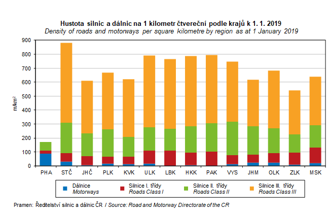 Graph 38. Density of roads and motorways per square kilometre by region as at 1 January 2019