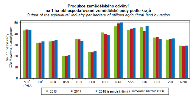Graph 23. Output of the agricultural industry per hectare of utilised agricultural land by region