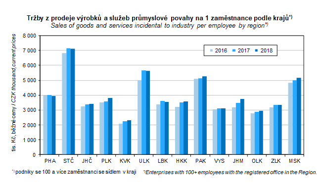 Graph 30. Sales of goods and services incidental to industry per employee by region