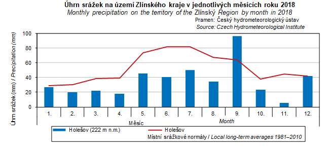 Graph 2. Monthly precipitation on the territory of the Zlínský Region by month in 2018