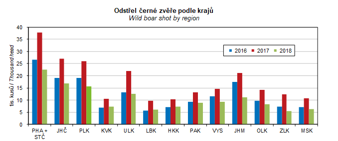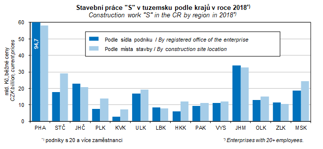 Graph 34. Construction work ˝S˝ in the CR by region in 2018