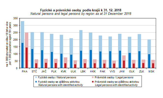 Graph 21. Natural persons and legal persons by region as at 31 December 2018
