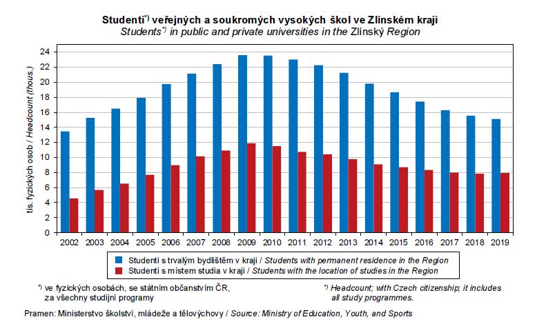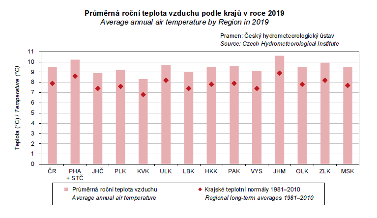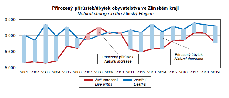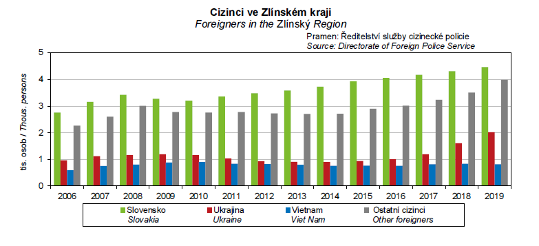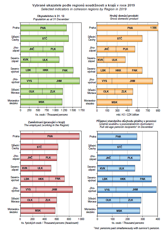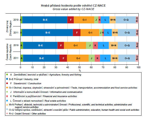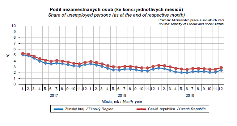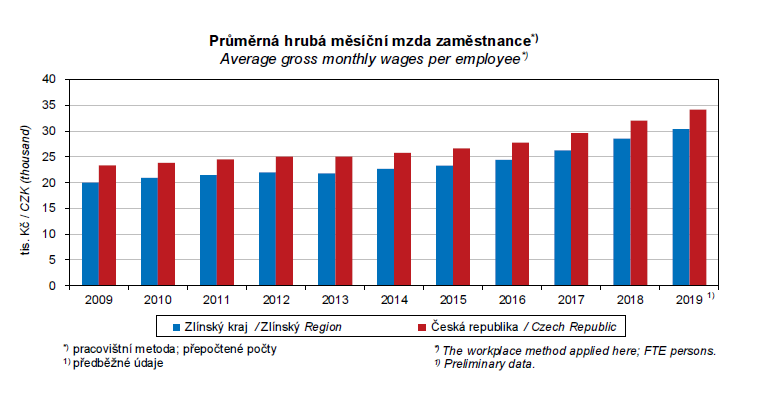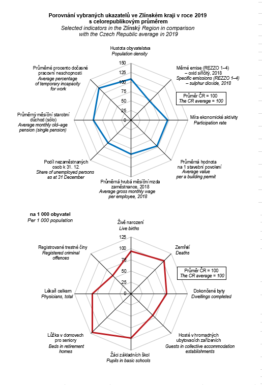 Graph 1. Selected indicators in the Zlínský Region in comparison with the Czech Republic average in 2019