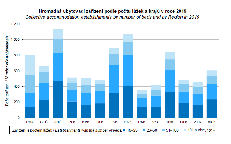 Graph 38. Collective accommodation establishments by number of beds and by Region in 2019