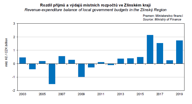Graph 18. Revenue-expenditure balance of local government budgets in the Zlínský Region