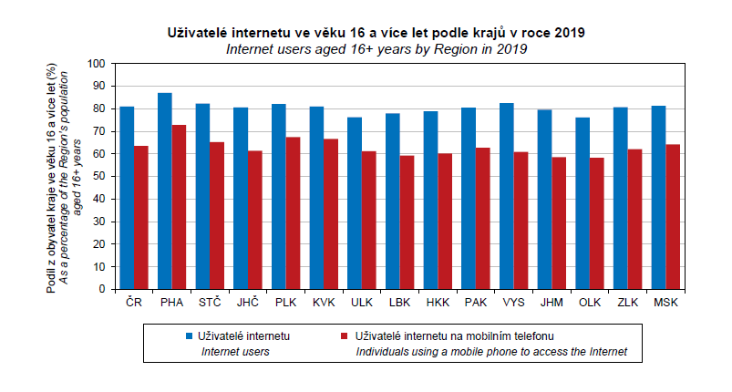 Graph 41. Internet users aged 16+ years by Region in 2019