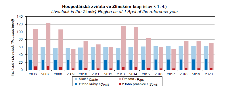 Graph 27. Livestock in the Zlínský Region as at 1 April of the reference year