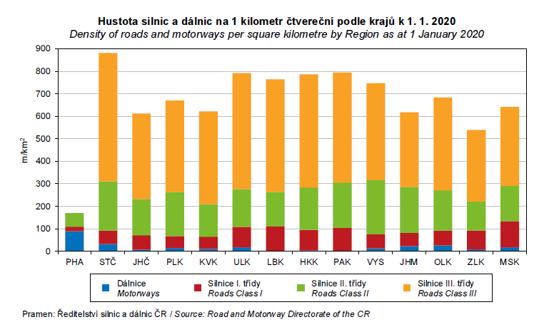 Graph 40. Density of roads and motorways per square kilometre by Region as at 1 January 2020