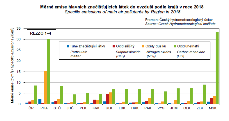 Graph 5. Specific emissions of main air pollutants by Region in 2018