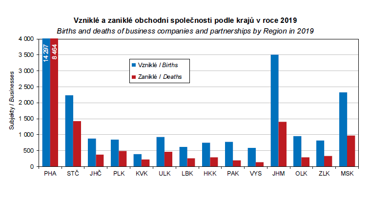 Graph 24. Births and deaths of business companies and partnerships by Region in 2019