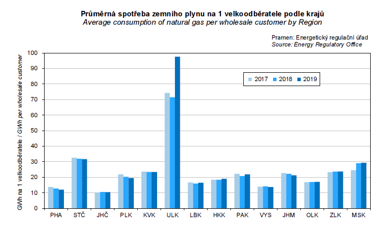 Graph 34. Average consumption of natural gas per wholesale customer by Region