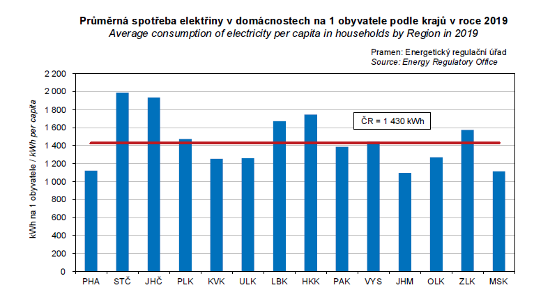Graph 33. Average consumption of electricity per capita in households by Region in 2019