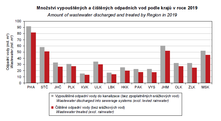 Graph 7. Amount of wastewater discharged and treated by Region in 2019