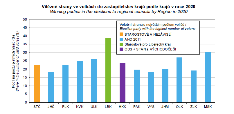 Graph 50. Winning parties in the elections to regional councils by Region in 2020