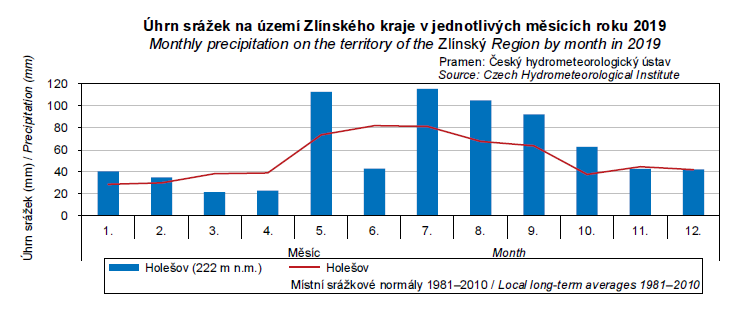 Graph 2. Monthly precipitation on the territory of the Zlínský Region by month in 2019