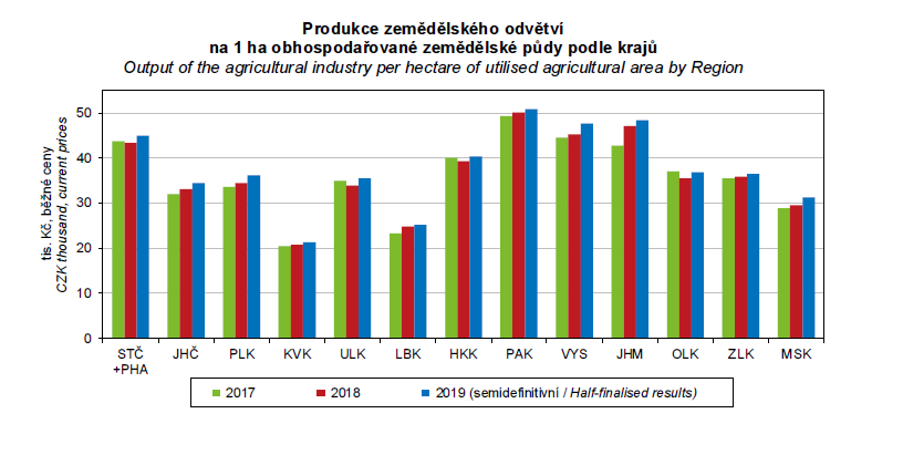 Graph 25. Output of the agricultural 'industry' per hectare of utilised agricultural area by Region