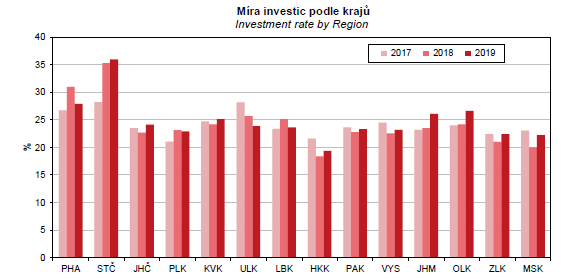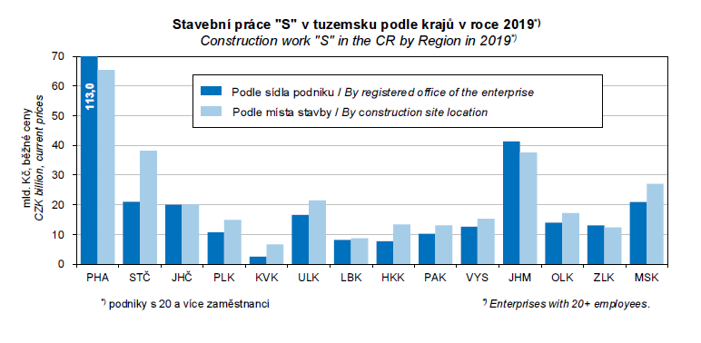 Graph 36. Construction work "S" in the CR by Region in 2019