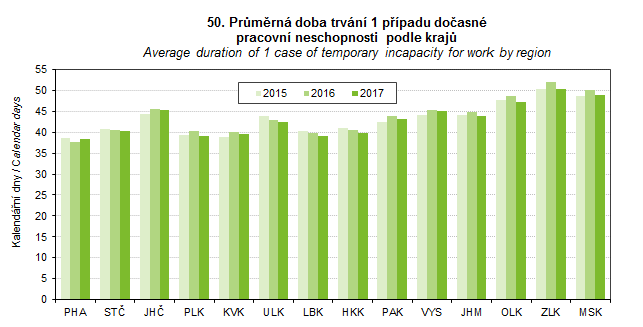 Graph 50. Average duration of 1 case of temporary incapacity for work by region