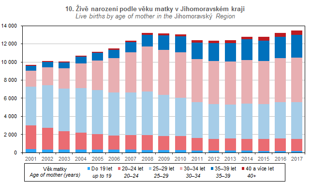 Graph 10. Live births by age of mother in the Jihomoravský Region