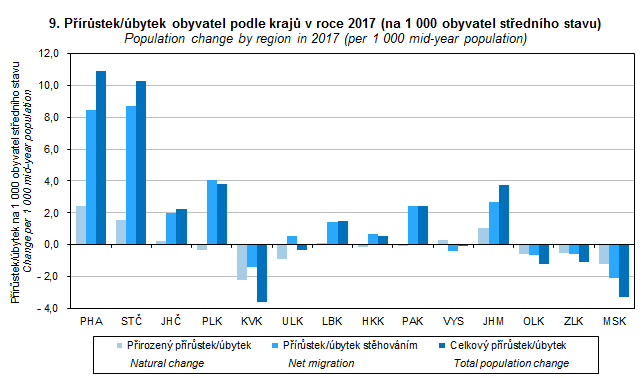 Graph 9. Population change by region in 2017 (per 1 000 mid-year population)