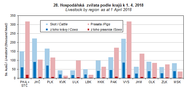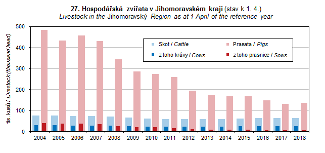 Graph 27. Livestock in the Jihomoravský Region as at 1 April of the reference year