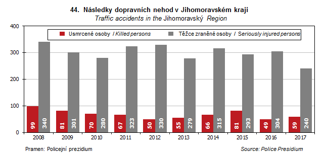 Graph 44. Traffic accidents in the Jihomoravský Region