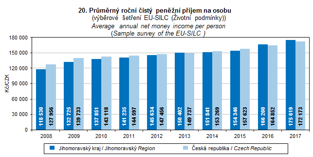 Graph 20. Average annual net money income per person (Sample survey of the EU-SILC )