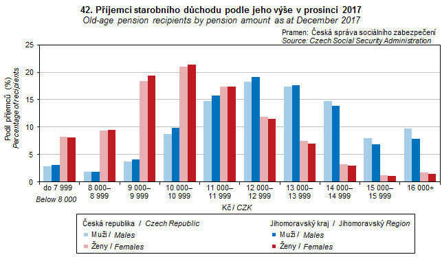Graph 42. Old-age pension recipients by pension monthly amount as at December 2017