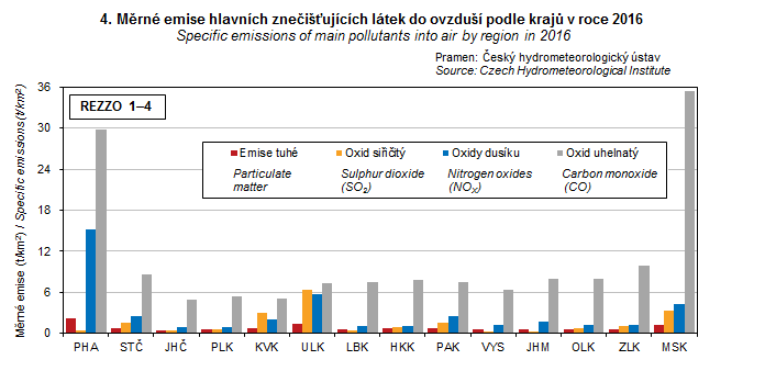 Graph 4. Specific emissions of main pollutants into air by region in 2016