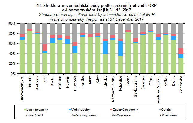 Graph 48. Structure of non-agricultural land by administrative districts of MEP in the Jihomoravský Region as at 31 December 2017
