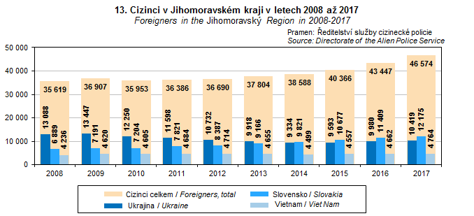 Graph 13. Foreigners in the Jihomoravský Region in 2012–2017