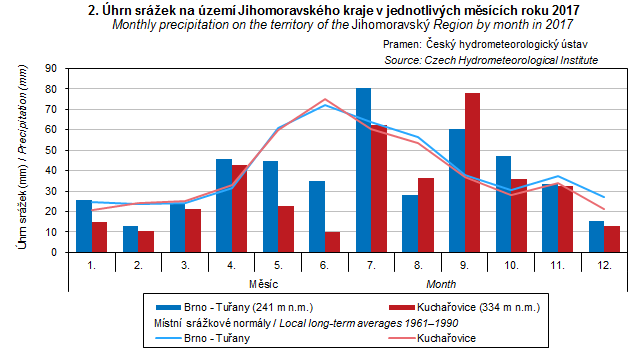 Graph 2. Monthly precipitation on the territory of the Jihomoravský Region by month in 2017