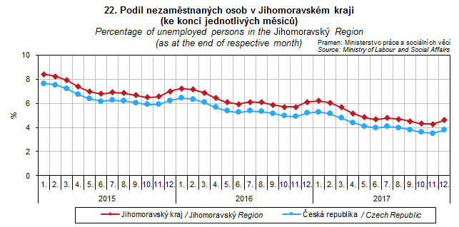 Graph 22. Share of the unemployed persons in the Jihomoravský Region (as at the end of respective month)