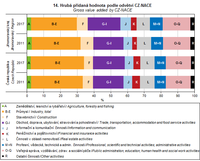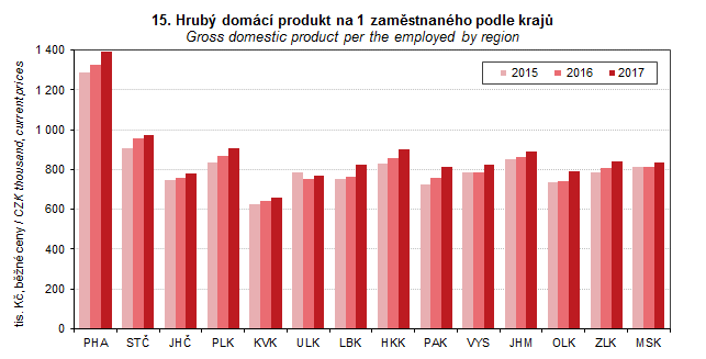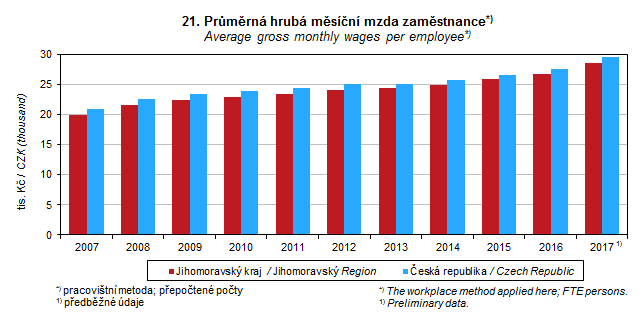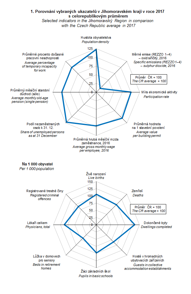 Graph 1. Selected indicators in the Jihomoravský Region in comparison with the Czech Republic average in 2017