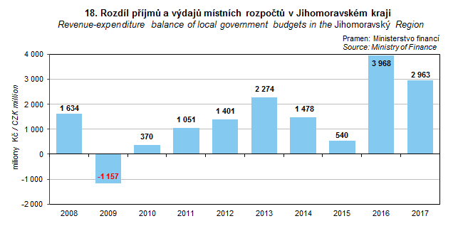Graph 18. Revenue-expenditure balance of local government budgets in the Jihomoravský Region