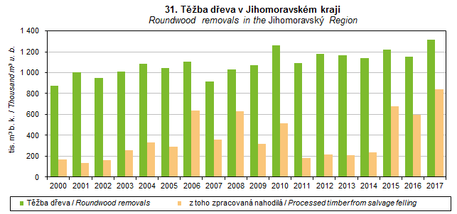 Graph 31. Roundwood removals in the Jihomoravský Region