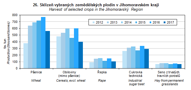 Graph 26. Harvest of selected crops in the Jihomoravský Region