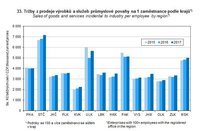 Graph 33. Sales of goods and services incidental to industry per employee by region